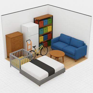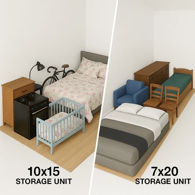 These sizes are equivalent to a large half bathroom, offering ample space for storing a range of items, from small furniture to personal belongings and boxes